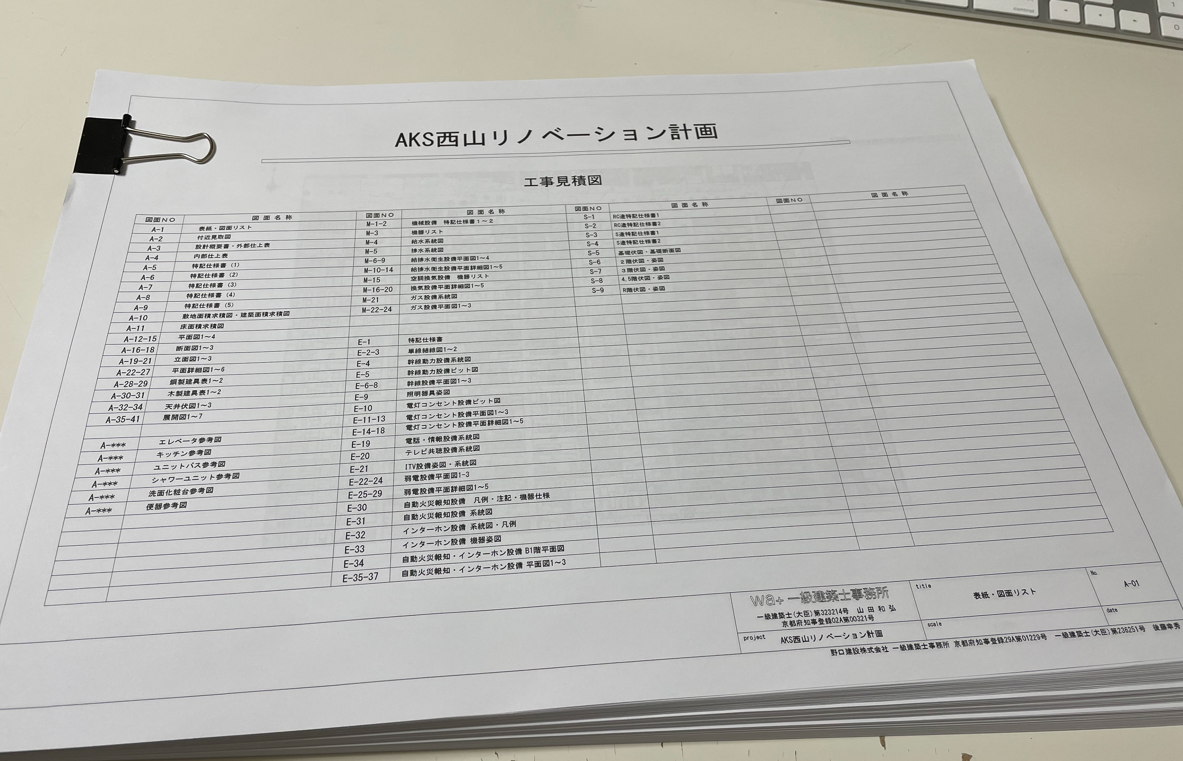 このところずっと取り組んでいたAKS西山様・リノベーション計画の工事用図面が何とか施工者にお渡しができました。枚数は参考図を入れずに126枚。住宅設備の参考図を入れると256枚と、結構な枚数に。住戸タイプごとに、仕様も変わってしまったので、致し方がないものの住宅設備参考図が多すぎる。。。一応当時の図面が残っていたので、一から建物を測って書く必要がなかったので、非常に助かったのもあれば、手書きの図面だったので、あちらこちらで整合しておらず。。。どっちが正しいのか?悩まされる状況もたくさんありました。手書きの頃は、今のCAD時代には無い良さ、図面の味わいがあるものの、一つの平面図を書いた後に、やっぱり気が変わったとか、最初に書いていたこととか忘れてしまってとか、今は、書き間違いや図面修正は、簡単に直せますが、手書き時代は本当に一苦労だったんだろうなぁと。。。しみじみ。